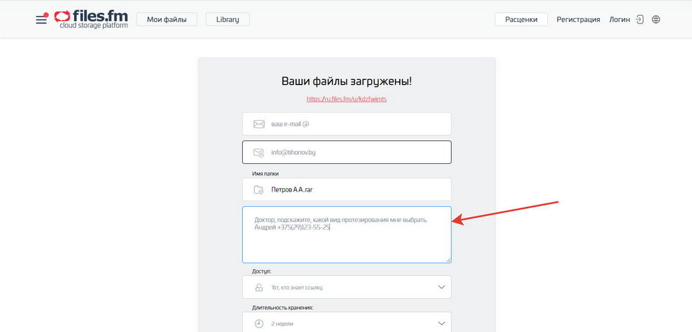 Уже сейчас Вы загрузили файл и получили ссылку на его скачивание.