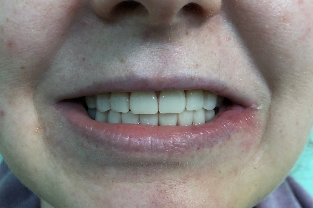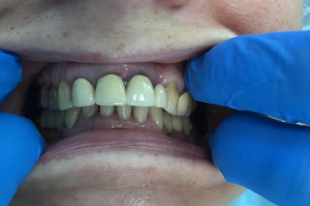 Пациентка обратилась с жалобами на неэстетичные металлокерамические коронки, которые уже менялись неоднократно, на подвижность зубов верхней и нижней челюсти.