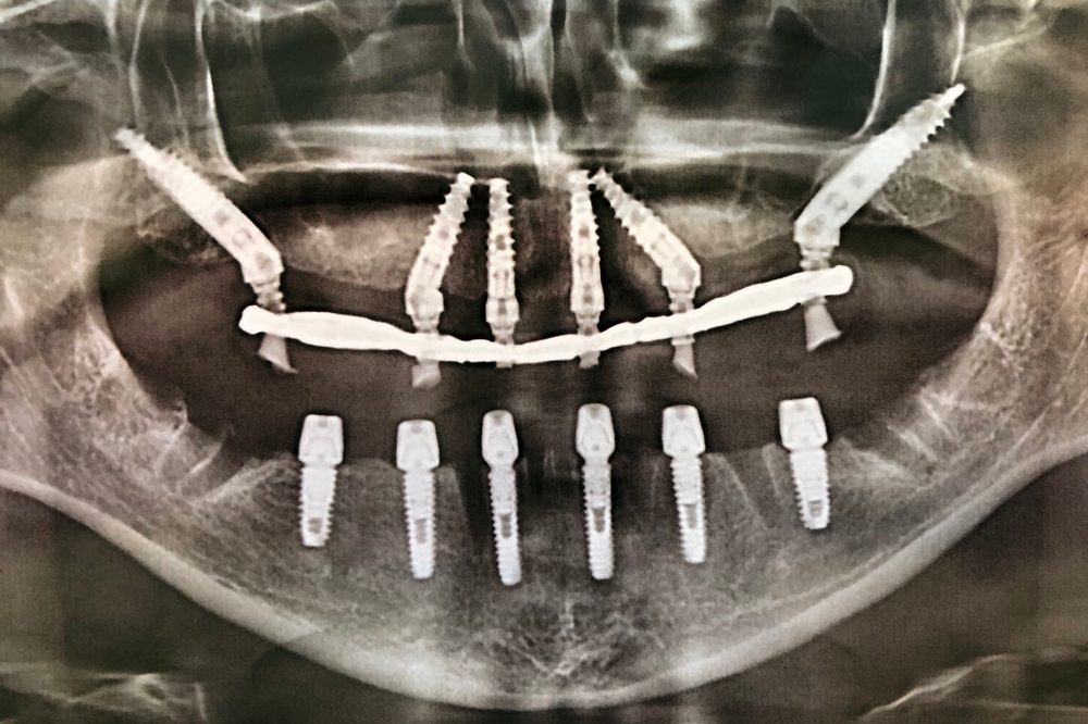 Изучив данные 3D-исследования, которые пациентка прислала через интернет, доктор предложил провести протезирование верхней и нижней челюстей в кратчайшие сроки при помощи методики All-on-6 (все на 6-ти). Во время операции были удалены старые протезы, оставшиеся зубы, установлены 6 имплантатов на верхней и 6 имплантатов на нижних челюстях, и за 5 дней были изготовлены и фиксированы несъемные эстетичные протезы на обеих челюстях.